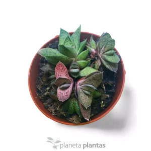 Aufgrund seines langsamen Wachstums und seiner niedrigen Statur eignet er sich ideal für kleine Töpfe und Arrangements mit anderen Sukkulenten oder Kakteen. Die Blätter sind in einer Rosette oder in gegenüberliegenden Paaren angeordnet, wodurch eine elegante und ausgewogene Figur entsteht. Im Frühling oder Sommer kann sie mit einem dünnen Blütenstand überraschen, aus dem kleine, röhrenförmige, rosa oder orangefarbene Blüten hervorgehen, die für Bestäuber sehr attraktiv sind.