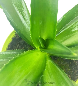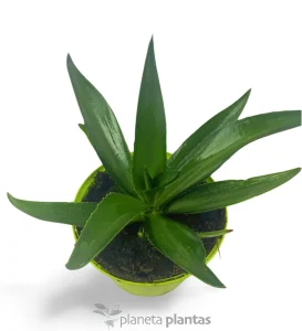• Saftige, spitze, flexible Blätter, deren Farbe von graugrün bis bläulich variieren kann.