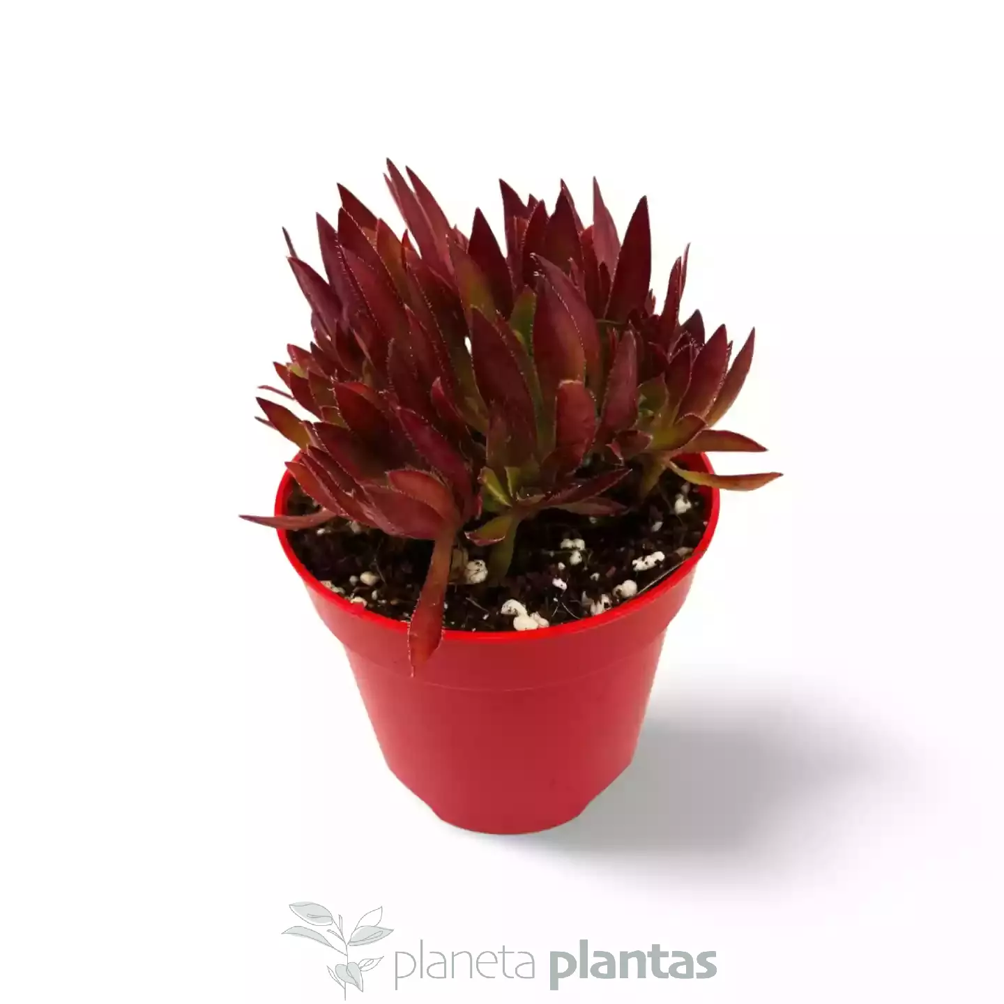 - Beschreibung: Aeonium „Firecrackers“ ist eine Sukkulentensorte, die für ihre auffälligen Rosetten aus mehrfarbigen Blättern bekannt ist. Seine Blätter sind lanzettlich und variieren in Grün-, Rot- und Lilatönen, wobei ihr Aussehen an Feuerwerkskörper erinnert, daher der gebräuchliche Name. Die Stängel sind dick und verzweigt und können zu kompakten Büscheln heranwachsen.