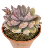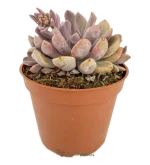 Graptoveria Debbie ist eine hybride Sukkulente, die aus der Kombination der Arten Graptopetalum paraguayense und Echeveria derenbergii entstanden ist. Es ist bekannt für seine fleischigen, abgerundeten Blätter, die eine blassgrüne Farbe mit einem Hauch von Rosa oder Lila an den Spitzen haben.